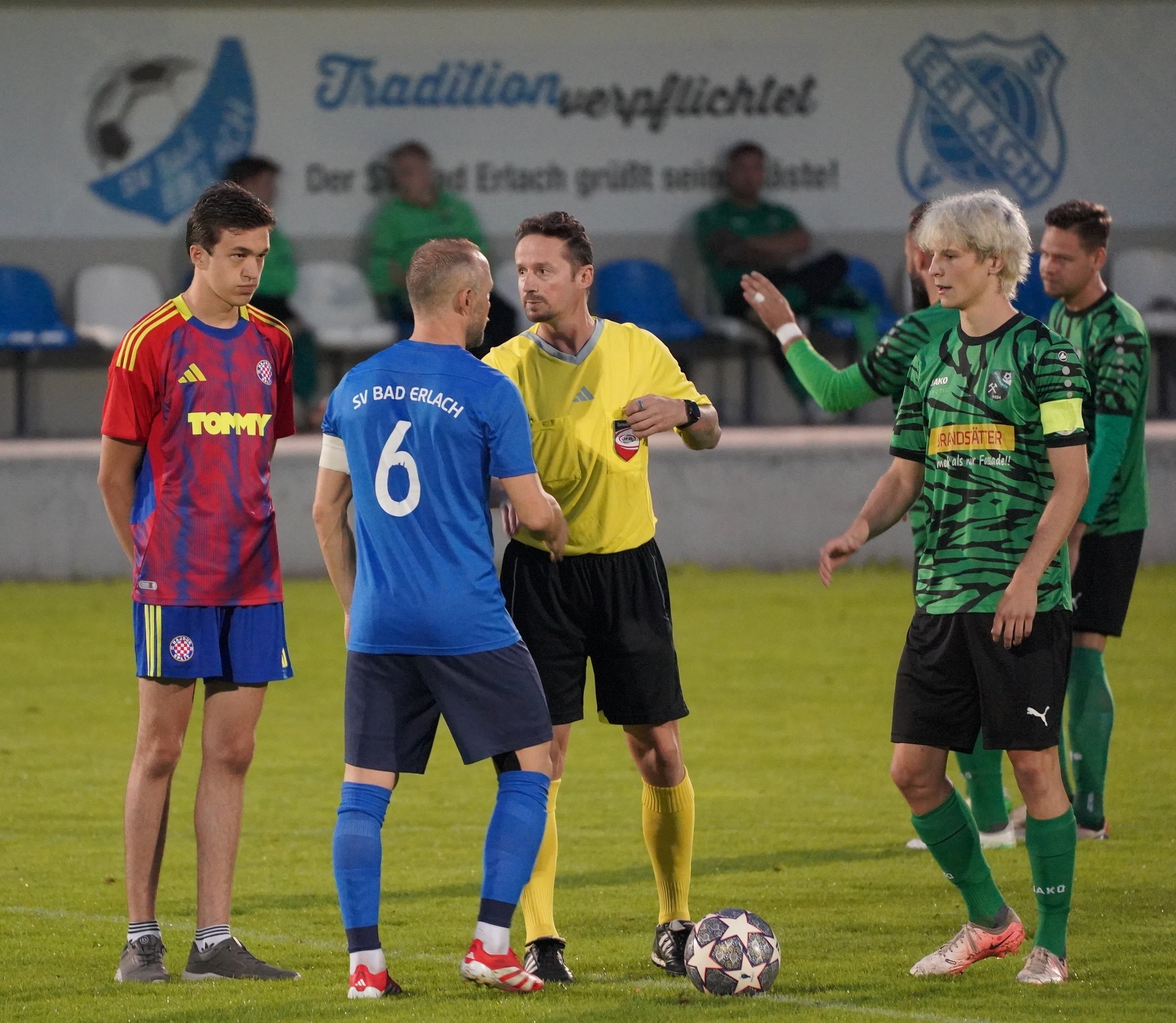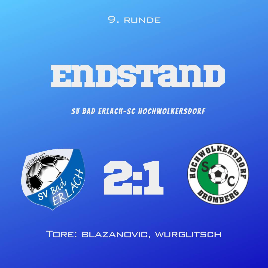 Letzte Woche noch "Hero for one day", diese Woche nehmen wir die Tabellenführung bis zumindest ins nächste Wochenende mit. Der SV BAD ERLACH gewinnt im Prestigeduell gegen den SC Hochwolkersdorf/Bromberg. Das Spitzenspiel der Runde begann vor toller Zuschauerkulisse mit intensiven Pressing der Gäste, das die heimische Mannschaft die ersten 25 Minuten stark beschäftigte und zu Fehlern zwang. Großchance ergaben sich daraus aber nicht. Danach kommen wir besser ins Spiel und werden zweimal durch Wurglitsch und Blazanovic brandgefährlich. Der dritte Anlauf gelingt - in der 42 Minute vollendet Blazanovic eine Kombination ins linke Kreuzeck. Die zweiten Halbzeit erhöhen Bad Erlach durch Flanke Manninger auf Wurglitsch per Kopf auf 2:0. Wir spielen kompakt, bis es zum Ende hin durch einen Elfer für Howodo noch mal spannend wird - 2:1. Nach ewig dauernden 10 Minuten Nachspielzeit bringen wir den Sieg über die Ziellinie und feiern den fünften Erfolg in Serie. Unsere U23 schließt davor ebenfalls mit 2:0 erfolgreich ab. Durch die gleichzeitige Niederlage von Oberwaltersdorf feiern wir unseren neuen Spitzenreiter - den SVBE!