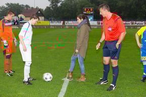 Beim Heimspiel des SV Bad Erlach gegen Theresienfeld spendierte die JVP Bad Erlach, vertreten durch Gemeinderätin Victoria Fischl, den Matchball.
